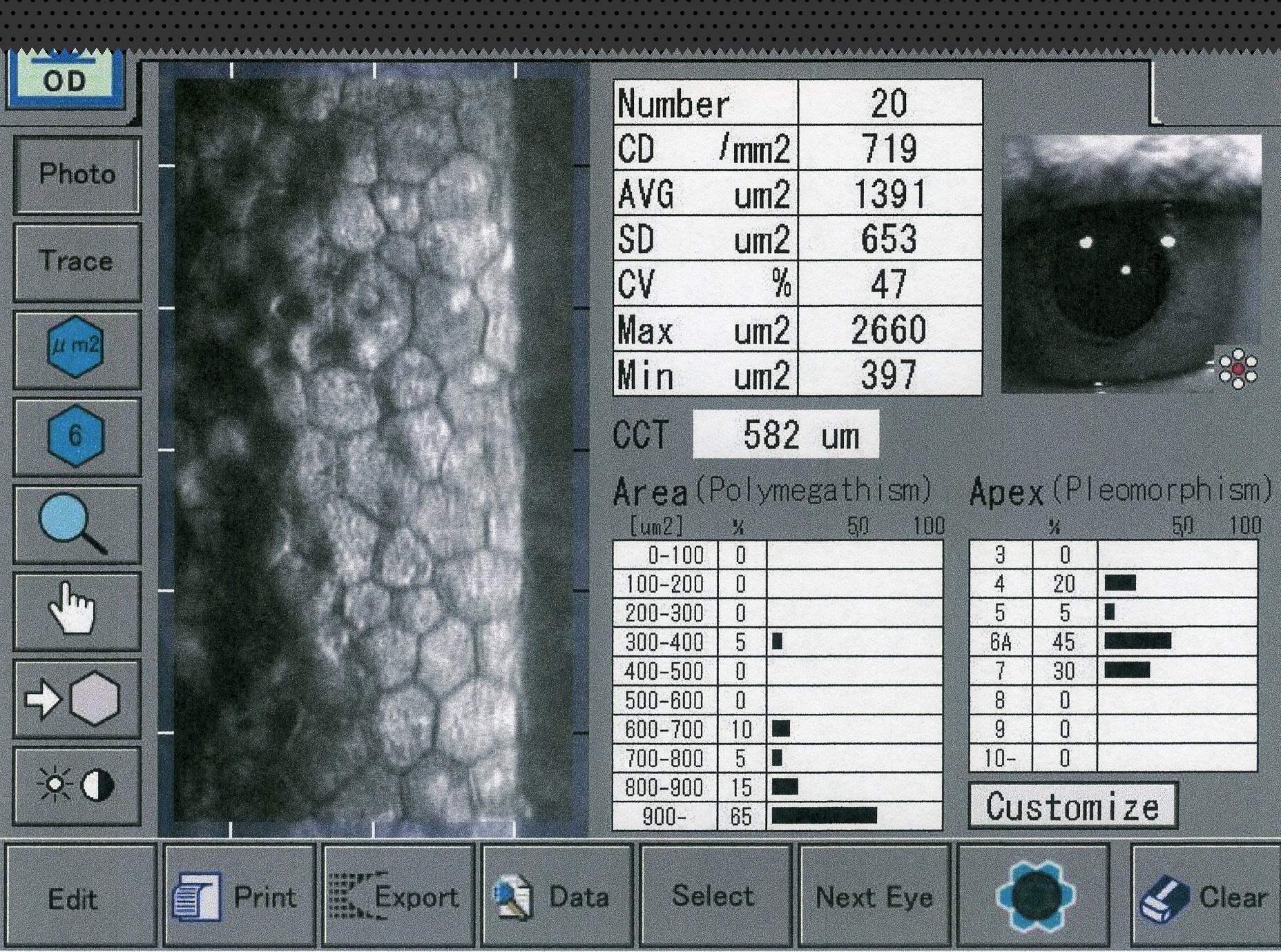 Recuento bajo, células muy grandes.