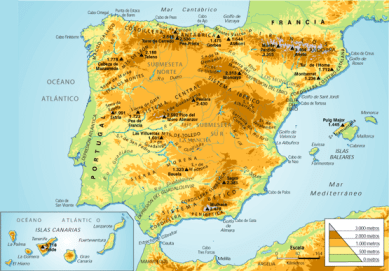 Orografía geográfica, con claves de elevación.