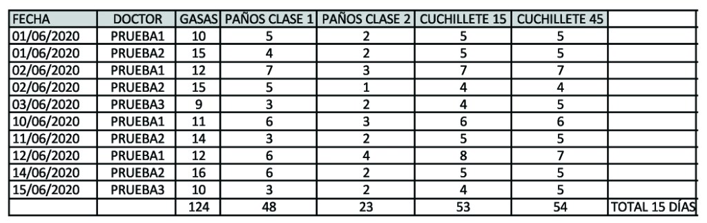 Una vez tenemos todos los datos podemos analizar haciendo una sencilla gráfica de líneas el consumo por tiempos, por doctor, por tipo de material, etc.